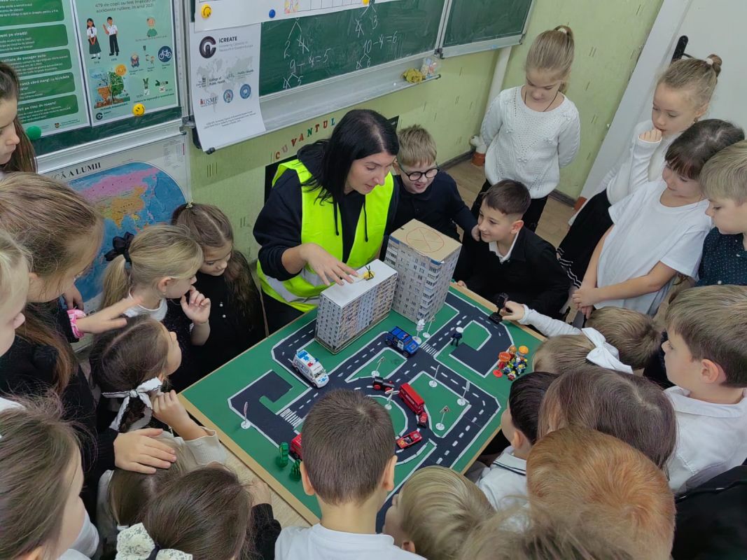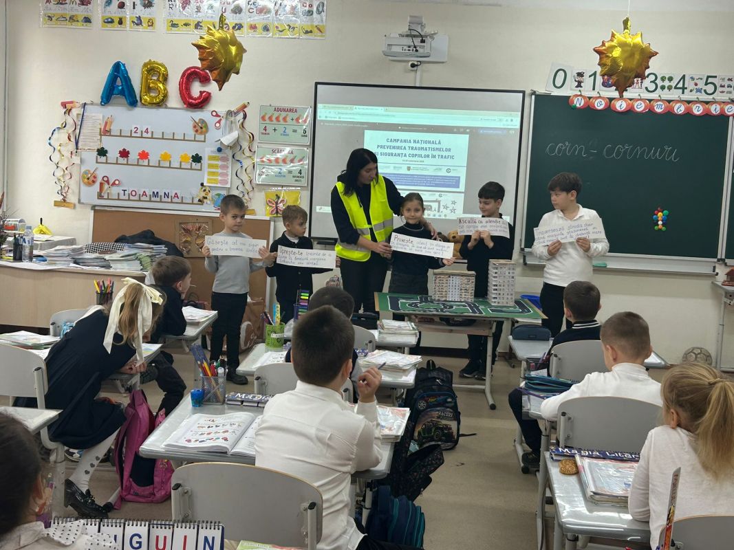 Exerciții practice au realizat și elevii claselor primare de la Liceul Teoretic „Mihail Sadoveanu” din orașul Hîncești, care au făcut cunoștință cu principalele indicatoare rutiere și au participat la activități interactive privind modul corect de traversare a străzii și comportamentul responsabil al pietonilor. Activitatea a avut rolul de a consolida cunoștințele teoretice și de a forma deprinderi practice sigure încă de la vârste fragede.